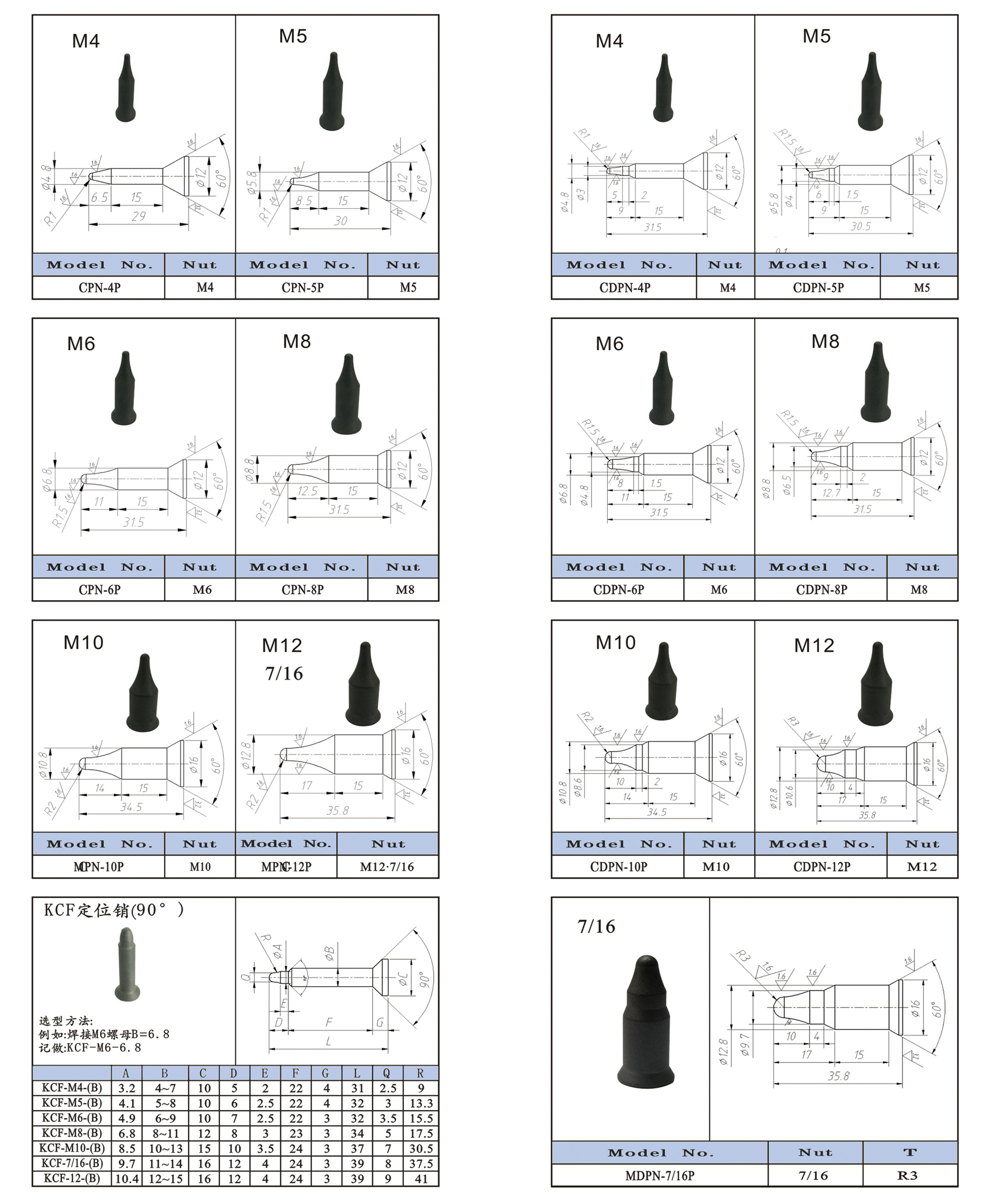 KCF为一种特殊的铬铁合金,其特点是,硬度及强度韧性好,而且经过特殊热处理工艺后,具有表面低压绝缘的特点,而焊接螺母或螺栓时,对螺纹部份要求作绝缘保护,以防止由于分流而烧伤螺芽;由于KCF作为棒材成型材料,加工比较方便,周期会较短;因而用KCF材料作为定位芯比较理想。